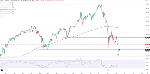 汇价在8月先后两次尝试反弹均未成功,而且还形成了更低的高点,因此短线或继续考验下方140-141的重要支撑,这里还是2021年以来上升趋势线所在的位置,因此可能吸引部分买盘力量入场。此外,乐观的非农数据也将对汇价形成支撑。